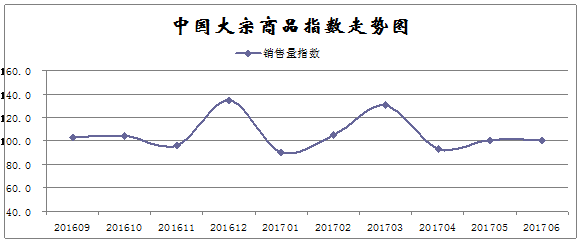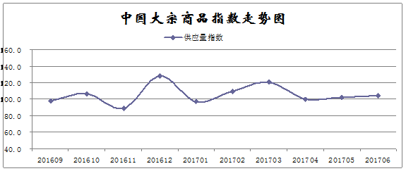 由中國物流與采購聯合會調查、發布的2017年6月份中國大宗商品指數為103.6點,升幅雖較5月份縮減0.2個百分點,但已連續五個月呈現上漲態勢。從主要分項指數來看,銷售量指數升幅明顯擴大,反映國內需求情況良好;而反映供應端的供應量指數和庫存量指數升幅均有不同程度的縮減,則表明當前國內市場供應增速減緩,供應壓力有所緩解。數據顯示,當前國內大宗商品市場穩中向好,產銷銜接更趨正常。
