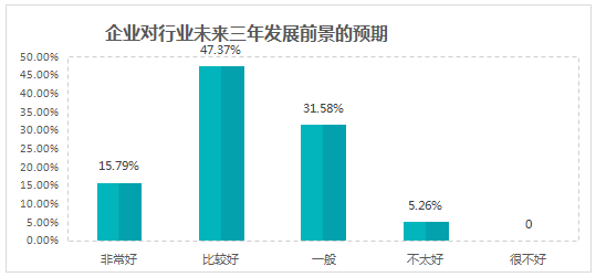 在調研中,36.84%的企業預計上半年營收將比上年同期減少30%以上,26.32%認為將比上年同期減少20%-30%;對于行業未來三年的發展前景,多數人持樂觀態度,47.37%認為發展前景比較好,15.79%認為前景非常好。