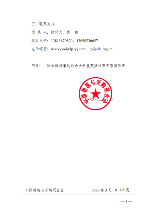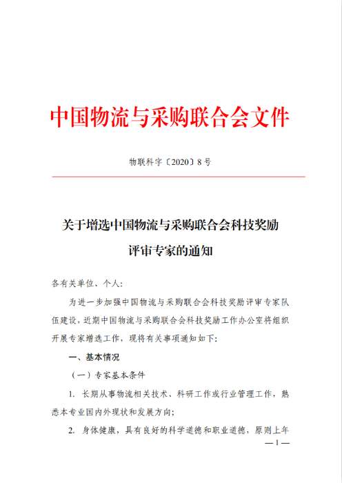 關于增選中國物流與采購聯合會科技獎勵評審專家的通知