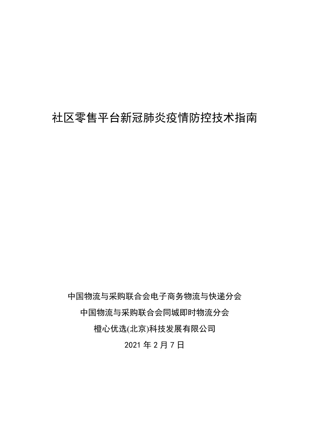 為有效保障社區(qū)零售平臺(tái)做好疫情防控工作,進(jìn)一步引導(dǎo)社區(qū)零售平臺(tái)為廣大消費(fèi)者提供安全、安心的服務(wù),中國(guó)物流與采購(gòu)聯(lián)合會(huì)電商物流與快遞分會(huì)、同城即時(shí)物流分會(huì)聯(lián)合滴滴旗下社區(qū)電商平臺(tái)橙心優(yōu)選于2月7日發(fā)布了行業(yè)首部《社區(qū)零售平臺(tái)新冠肺炎疫情防控技術(shù)指南》(以下簡(jiǎn)稱指南)。該指南從組織保障、管理制度、防疫保障、追溯管理等方面對(duì)社區(qū)零售平臺(tái)提出了基礎(chǔ)性要求,對(duì)倉(cāng)儲(chǔ)、配送、團(tuán)長(zhǎng)作業(yè)以及疫情防控應(yīng)急處置等各個(gè)作業(yè)流程進(jìn)行規(guī)范化、標(biāo)準(zhǔn)化指導(dǎo)。