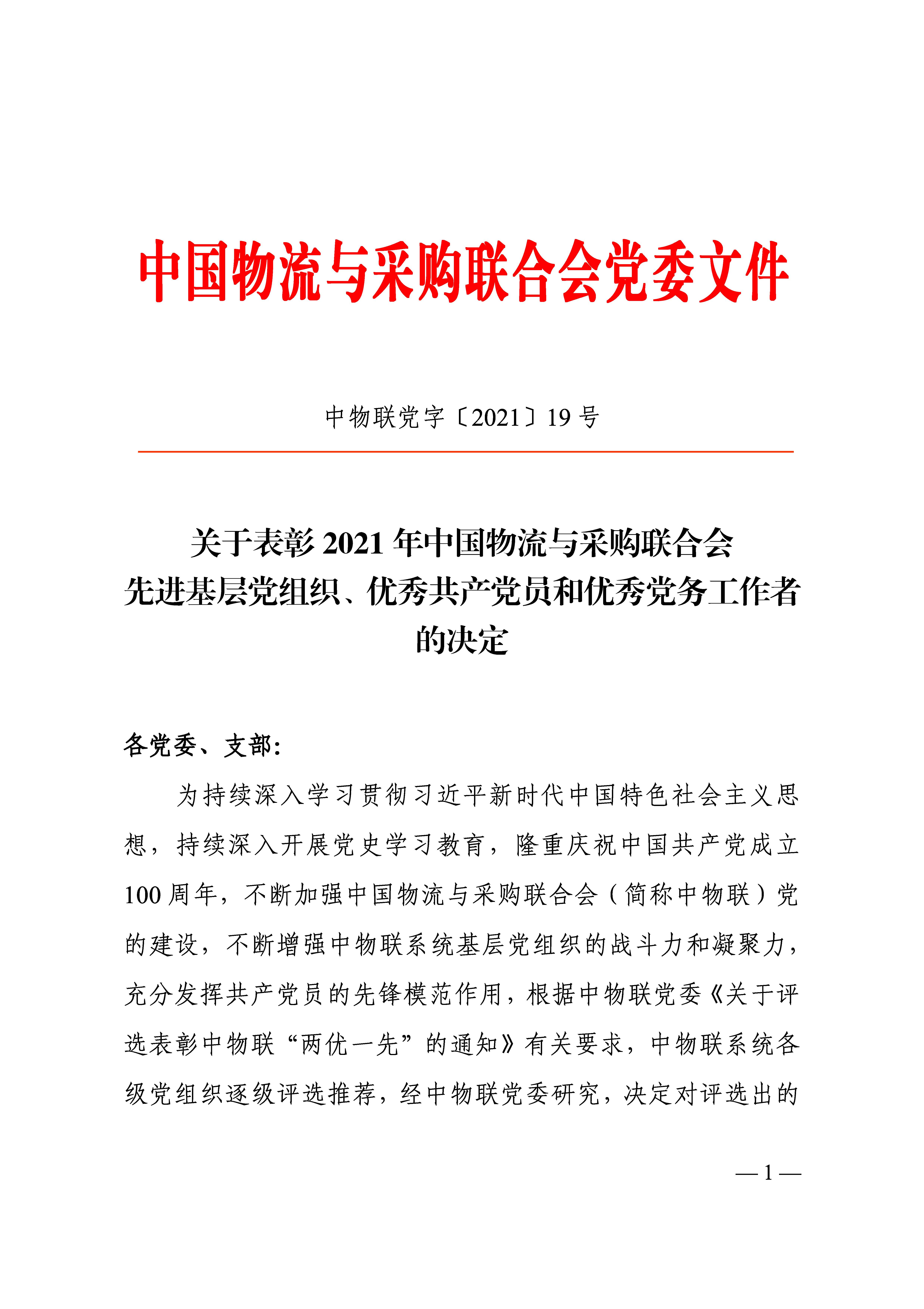 附件:關于表彰2021年中國物流與采購聯合會先進基層黨組織、優秀共產黨員和優秀黨務工作者的決定.pdf