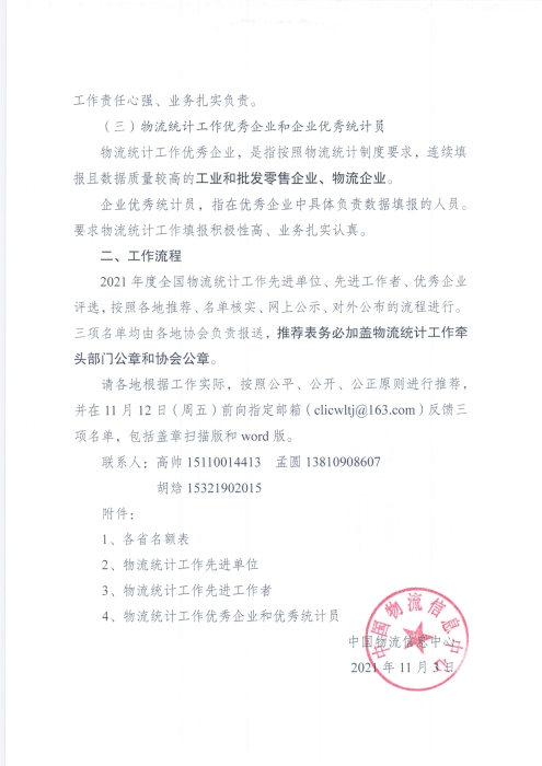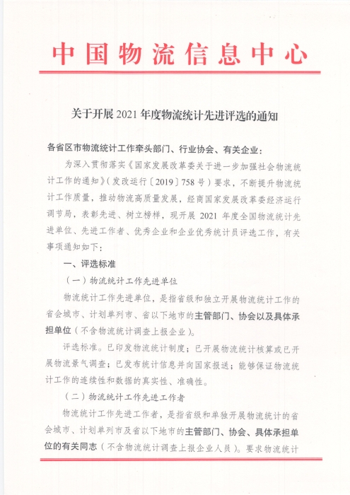 關于開展2021年度物流統計工作先進評選的通知.docx