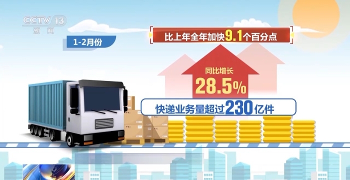 1—2月份,單位與居民物品物流總額同比增長(zhǎng)14.0%。其中,隨著即時(shí)配送、直播電商以及打卡出行等新模式不斷推進(jìn),冰雪裝備、生鮮特產(chǎn)、戶外娛樂(lè)、國(guó)潮品牌等領(lǐng)域成為民生消費(fèi)熱點(diǎn),推動(dòng)線上電商物流需求加速回升。1—2月份,實(shí)物商品網(wǎng)上零售額同比增長(zhǎng)14.4%,增速比上年全年加快6個(gè)百分點(diǎn);快遞業(yè)務(wù)量超過(guò)230億件,同比增長(zhǎng)28.5%,比上年全年加快9.1個(gè)百分點(diǎn)。