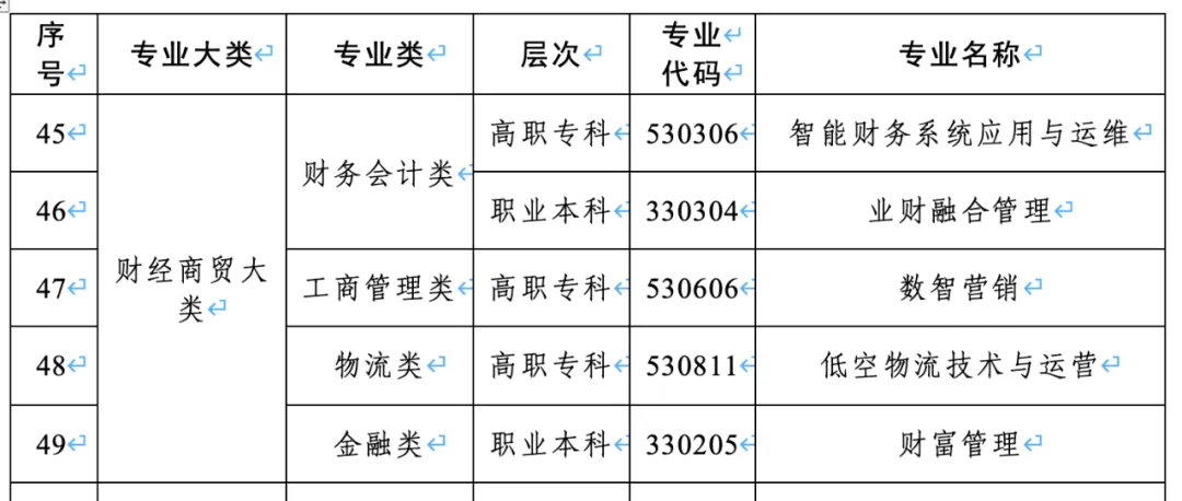 表2 財經(jīng)商貿(mào)大類新增專業(yè)