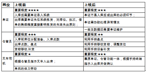 由上可見,系統上線后,單證、倉管員和叉車司機三個崗位實現了部分的職能合并,從而對單證人員提出了更高要求:新的倉管崗位要求會駕駛叉車,會使用手持終端。同時,各崗位基于信息系統工作,工作效率和準確性得到了很大提高。