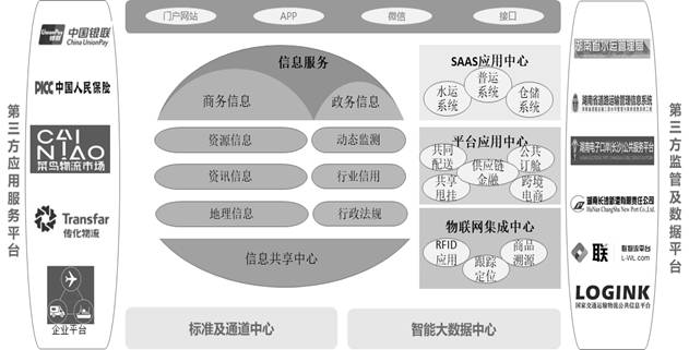 物流公共信息服務(wù)平臺是一個有機體,以標準和通道中心、智能大數(shù)據(jù)中心建設(shè)為主體。并以這兩大中心作為其他應(yīng)用服務(wù)的基礎(chǔ)性支撐,發(fā)揮公共平臺巨大整合效應(yīng)。