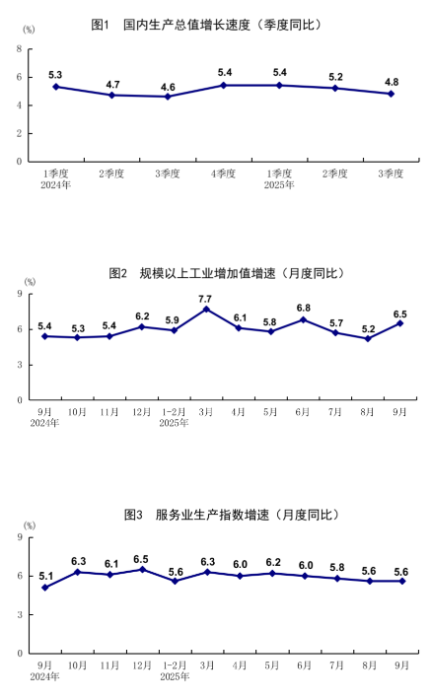 2024年各季度及2025年一季度、二季度、三季度GDP環比增速分別為1.3%、1.0%、1.5%、1.5%、1.2%、1.0%和1.1%。