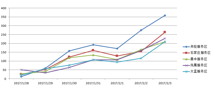 正月初八至十五重載貨車停靠數(shù)量TOP5服務(wù)區(qū)