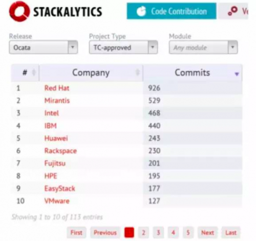 同時貢獻 OpenStack 和 Kubernetes 全球三大專業開源企業:紅帽、Mirantis、EasyStack;