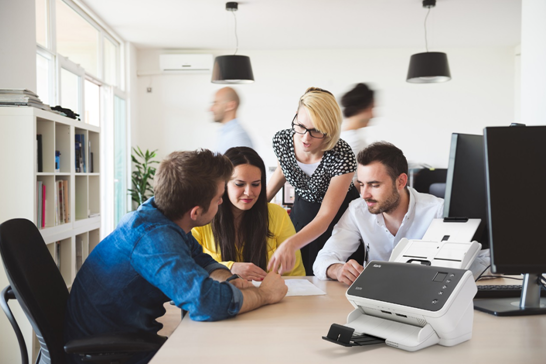 • 卓越體驗:簡化數據采集流程。主動進紙技術可讓用戶在掃描儀準備文檔時專注處理客戶需求。一鍵式控制面板方便多個用戶在網絡共享設備上同時進行作業。