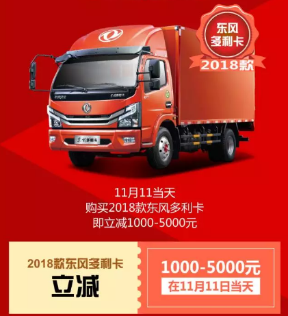 雙十一當天購東風多利卡D9、東風多利卡D12立享3000-6000元優惠。