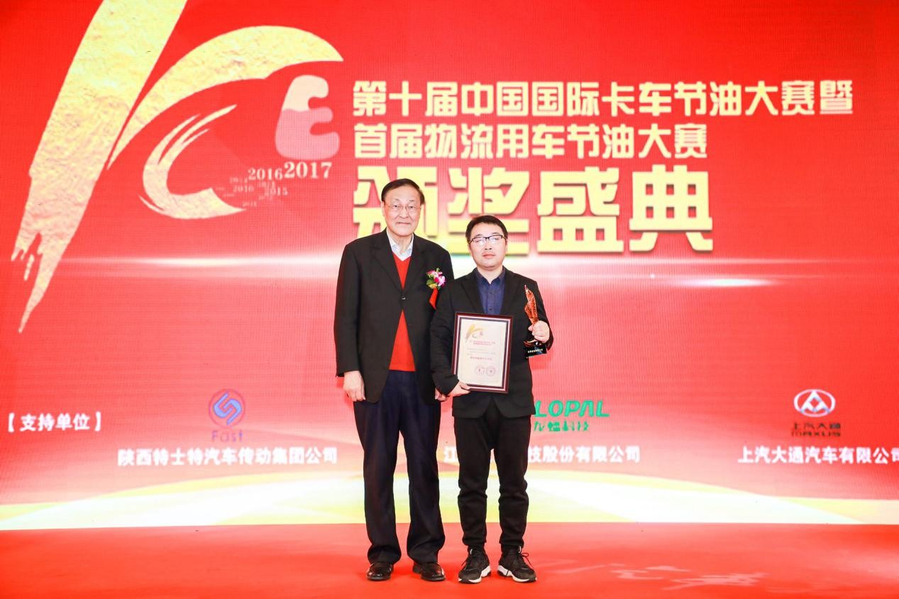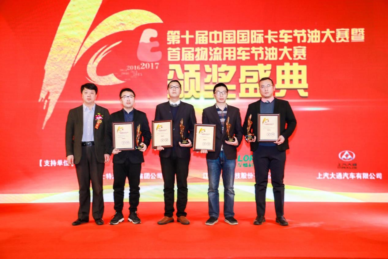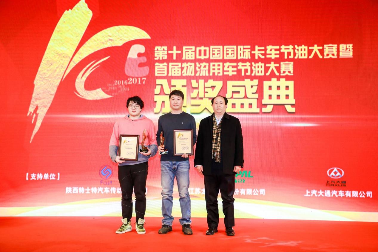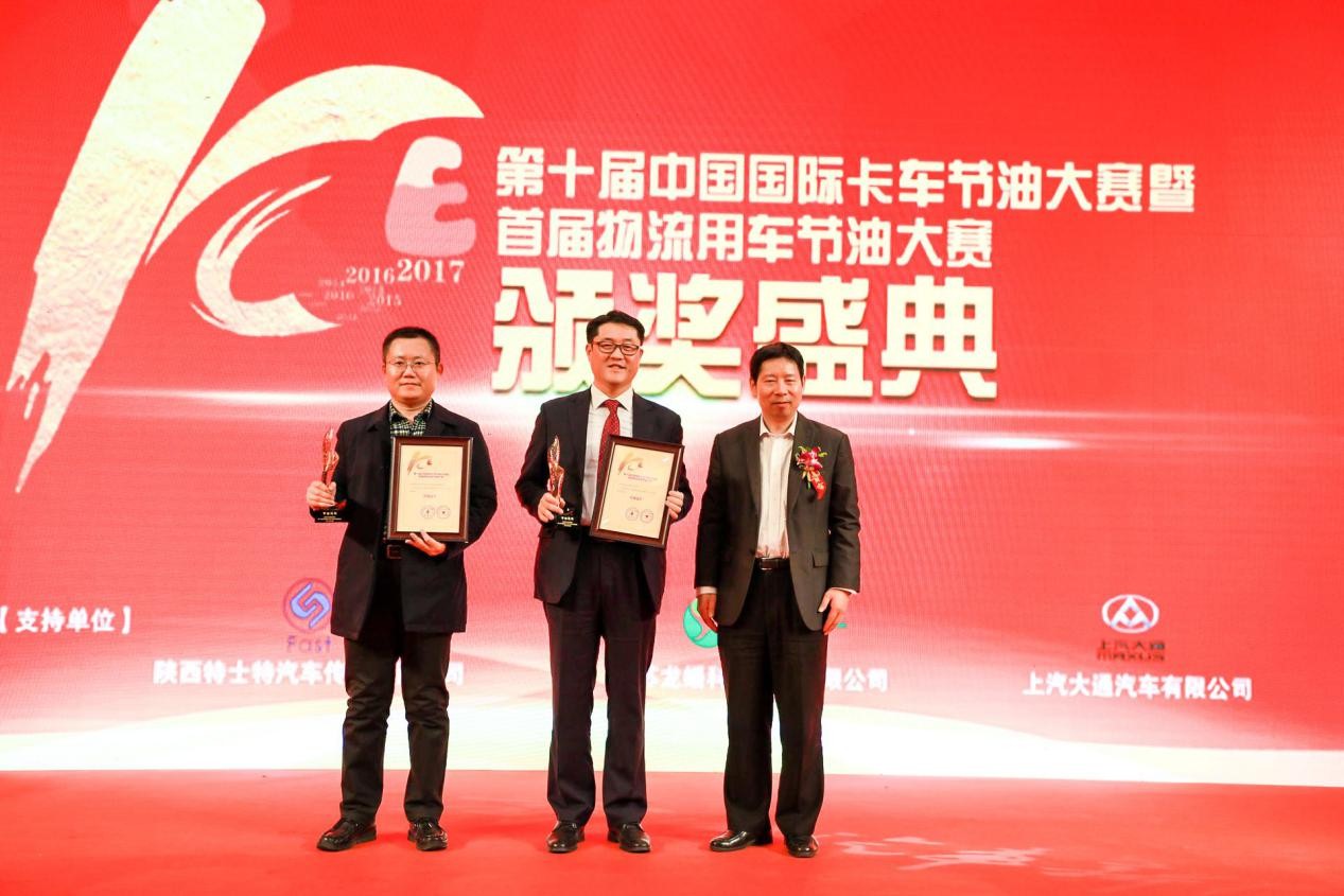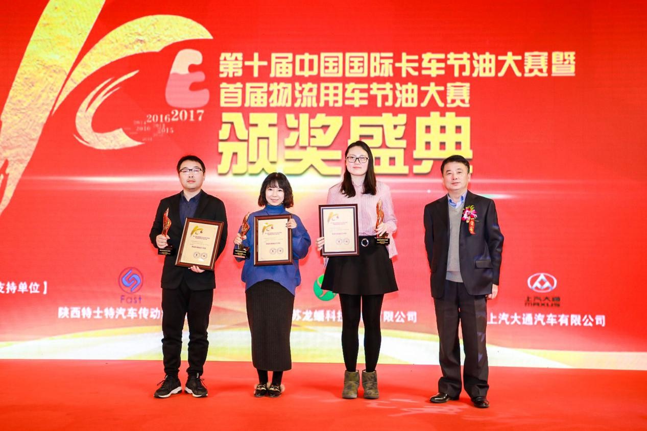 江蘇龍蟠(左)獲得“年度節能潤滑油獎”,陜西法士特變速器(中)再次獲得“節油變速器獎”