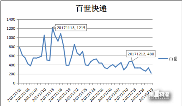 百世“雙11”峰值明顯,峰值出現(xiàn)在11月13日,“雙11”結(jié)束后的第二天,最熱新聞為正面內(nèi)容,“‘雙11’期間,百世快遞攜手娃哈哈向全行業(yè)快遞員兄弟在全國33個城市,2100個百世站點(diǎn)以及700個百世鄰里站點(diǎn)免費(fèi)送130萬瓶娃哈哈晶鉆純凈水,快遞小哥憑借快遞工服或工卡就可以在指定的地點(diǎn)領(lǐng)取”的消息最熱。