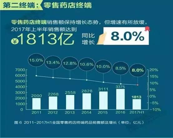 除去藥品零售的核心終端——醫(yī)院和連鎖藥店,剩余主要是單體藥店、鄉(xiāng)鎮(zhèn)村衛(wèi)生院/診所等。2016年全國(guó)零售藥店的銷售額大約3400億: