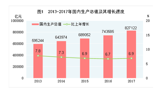 3月1日消息,國家統(tǒng)計局昨日發(fā)布《中華人民共和國2017年國民經(jīng)濟和社會發(fā)展統(tǒng)計公報》(以下簡稱《公報》)。《公報》顯示,初步核算,全年國內(nèi)生產(chǎn)總值827122億元,比上年增長6.9%。全年人均國內(nèi)生產(chǎn)總值59660元,比上年增長6.3%。全年國民總收入825016億元,比上年增長7.0%。