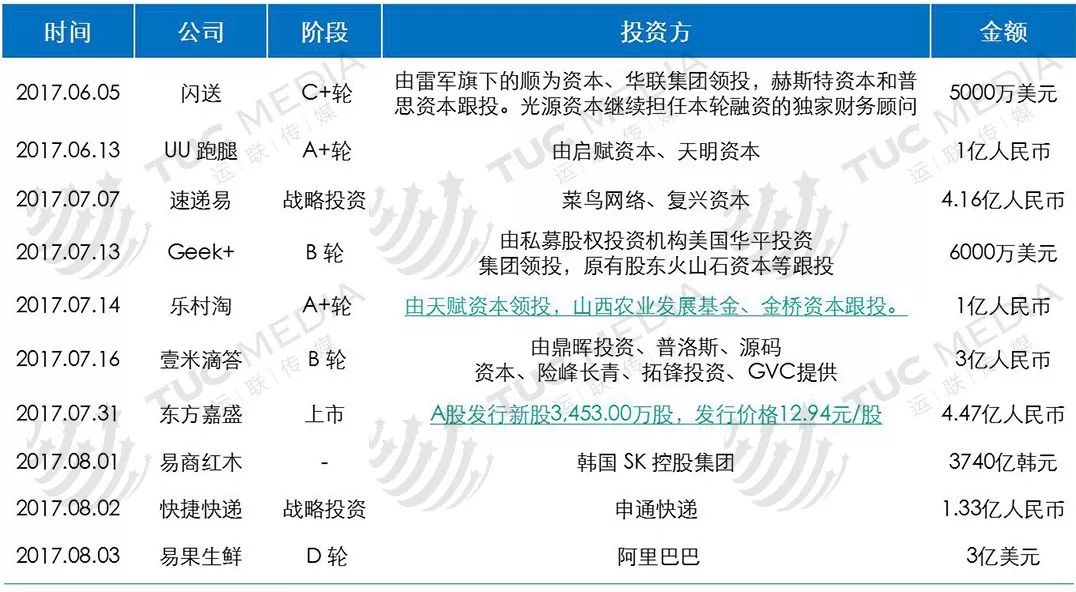 從融資數量上看,今年上半年億元融資有28筆,加上最近的愛庫存、凍品在線、以及今天獅橋的融資,為31筆;去年全年的億元融資44筆左右,其中包括百世上市,以及上市企業發行股票融資。今年上半年的億元級別融資數量就接近去年全年總數量的近七成。