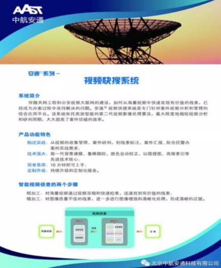 北京中航安通科技有限公司(Beijing Aero Antong Science and Technology Co., Ltd)是一家專業的智慧視覺解決方案提供商,為普通監控提供人工智能支撐。