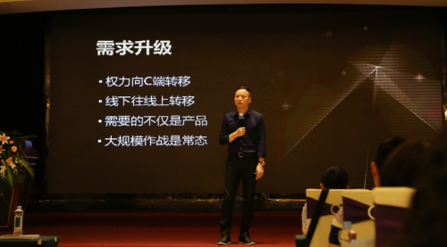 演講前,董輝先生對主題“破局”二字進行了詮釋,他認為“局者,心也。心困于局,必亂于局;欲破局,先滌心;心出牢籠,俯看當局,局自破。”我們常說,有所為要隨大勢而借勢。想要破局,首先要了解行業的進化。隨著人口紅利消失,產品紅利艱難,關系紅利弱化,競爭差距加大,行業邊界開始模糊,客戶需求也從產品到品牌——營銷方案——電商平臺——一體化解決方案,今天的客戶更想以最省心的全套服務,最 佳的體驗與交付,最有性價比的產品,最終達成用戶認同。