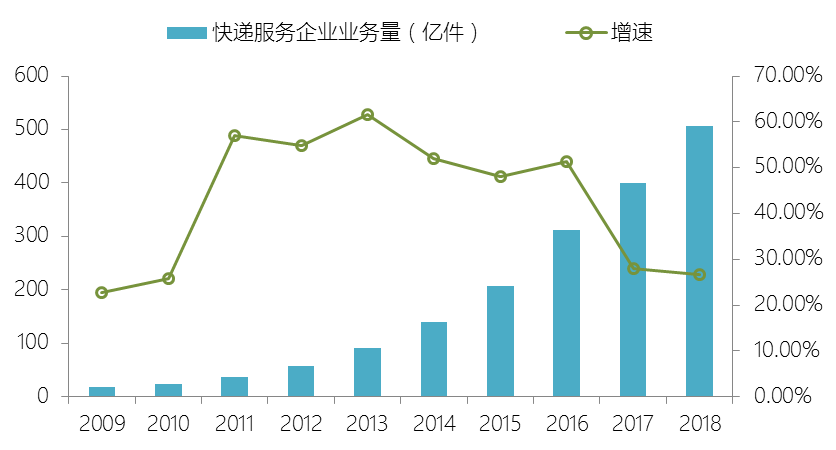 可見,我國正在迎來物流行業(yè)高速發(fā)展期。2018年,中國快遞量突破500億件,占比全球超過40%,并呈現(xiàn)連續(xù)十年業(yè)務量的正向增長。數(shù)據(jù)顯示,2017年我國智慧物流市場規(guī)模達到3495億元,預計2025年將超萬億。顯然,智慧物流解決了傳統(tǒng)物流不能處理的問題,為物流行業(yè)和電子商務行業(yè)的發(fā)展提供機遇,也進一步成為未來物流行業(yè)發(fā)展的重要決定性因素。