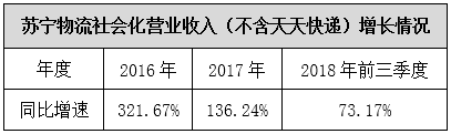 無論是從2018年極速增長的物流基礎設施,還是下沉創新的服務場景,拋開智慧零售,蘇寧物流無疑走在從企業物流到物流企業換道的關鍵階段。作為物流企業,服務和盈利才是唯一的核心。據財報顯示,近年來,蘇寧物流社會化營業收入(不含天天快遞)一直呈現增長態勢。其中,2016年大幅度增長或與2015年社會化業務基礎相對少有關。