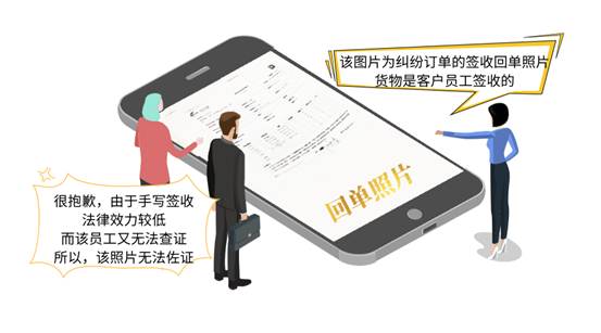 弊端:紙質單據簽收,本就存在難以核實簽收人身份信息,代簽、冒簽可能性較大,無法保障簽收真實性、法律效力較低的問題。即使拍攝簽收照片,也無法證明是不是收貨人本人簽收,無法保障簽收的安全性、真實性,而拍照的存根不具有法律效力。