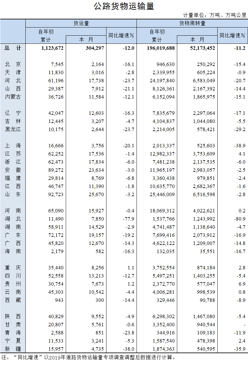 2020年5月公路貨物運輸量