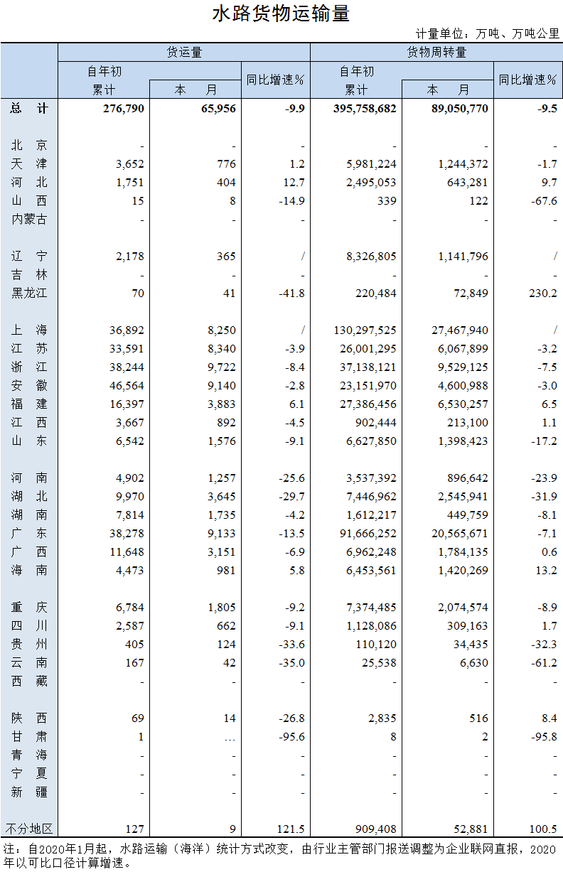 2020年5月水路貨物運(yùn)輸量