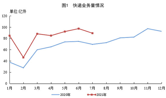 7月份,全國快遞服務(wù)企業(yè)業(yè)務(wù)量完成89.3億件,同比增長28.8%;業(yè)務(wù)收入完成827.2億元,同比增長14.4%。