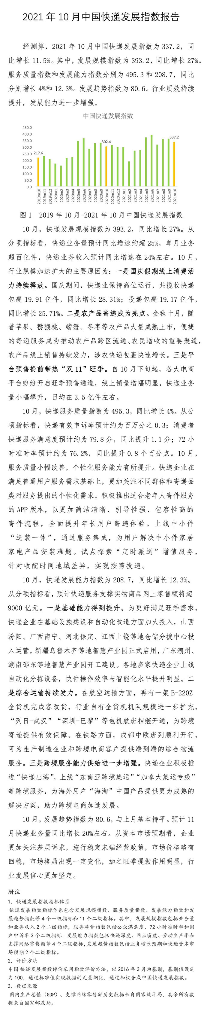 2021年10月中國快遞發展指數報告