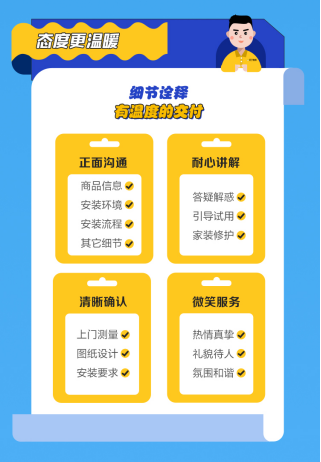 當下,消費者對服務體驗要求提升,如何提升時效、降低破損,做到送裝一體,成為行業、品牌需要面對的服務命題。雙十一期間,蘇寧易購對外發布“219”家裝物流服務標準,即“2次電聯1次上門9大服務”,在消費者完成下單購買產品之后,蘇寧易購啟動送裝一體服務流程,貨到預約和上門前電話聯系各1次,預約、上樓、檢查、安裝、調試、試用、拆舊、清掃、取舊九大服務一步到位。