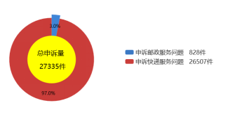 用戶對郵政服務問題申訴828件,環比下降23.1%,同比增長16.5%。