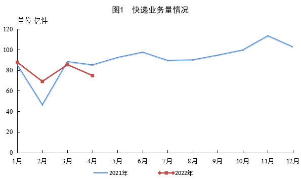4月份,郵政服務業務總量完成158.2億元,同比增長7.8%;郵政寄遞服務業務量完成22.0億件,同比增長4.1%;郵政寄遞服務業務收入完成28.6億元,同比下降6.4%。