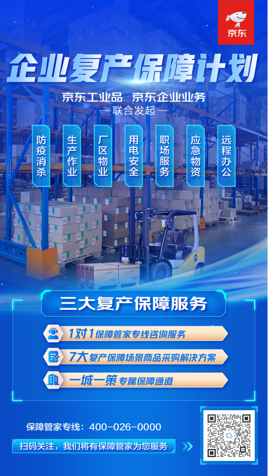 “企業(yè)復(fù)產(chǎn)保障計劃”通過整合京東的供應(yīng)鏈優(yōu)勢資源,首先解決的就是企業(yè)復(fù)工復(fù)產(chǎn)的高頻物資需求。在復(fù)產(chǎn)保障線上專區(qū),企業(yè)能夠快速完成防疫消殺、應(yīng)急物資、勞動保護(hù)、職場服務(wù)等不同場景所需的物資采購。京東慧采SaaS專屬采購平臺,支持尋源、在線協(xié)議、電子發(fā)票、自動對賬等功能,幫助企業(yè)實(shí)現(xiàn)一站式、無接觸高效采購。還有專人專線的“服務(wù)管家”為企業(yè)提供售前、售中、售后全套服務(wù)方案。