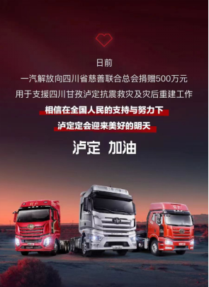 每次災(zāi)難的前面,都少不了卡友運送物資的身影;每個卡友出現(xiàn)的地方,都少不了一汽解放服務(wù)人員守護伴行。