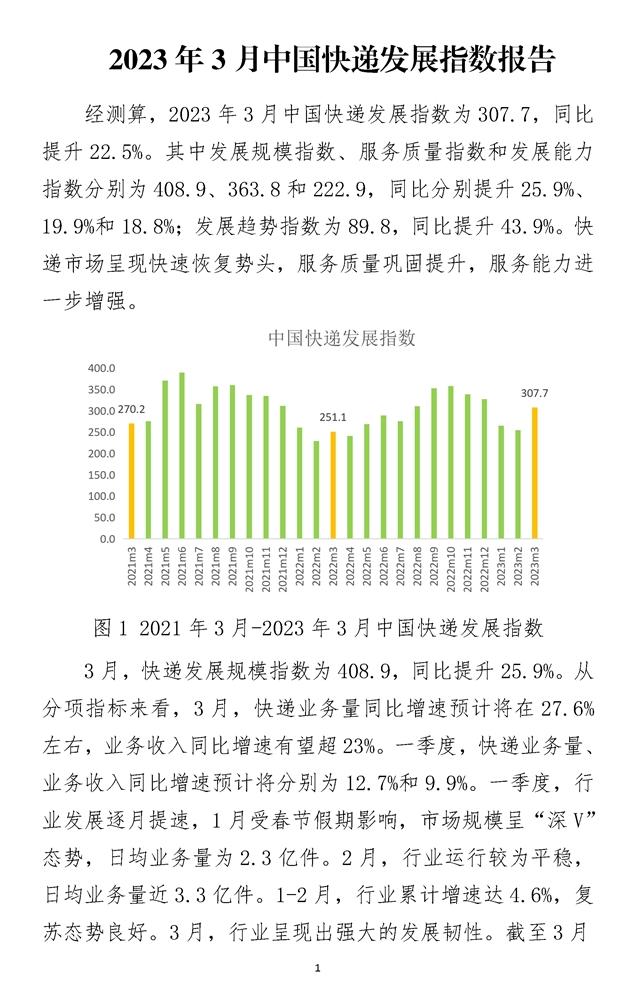 2023年3月中國快遞發(fā)展指數(shù)報告