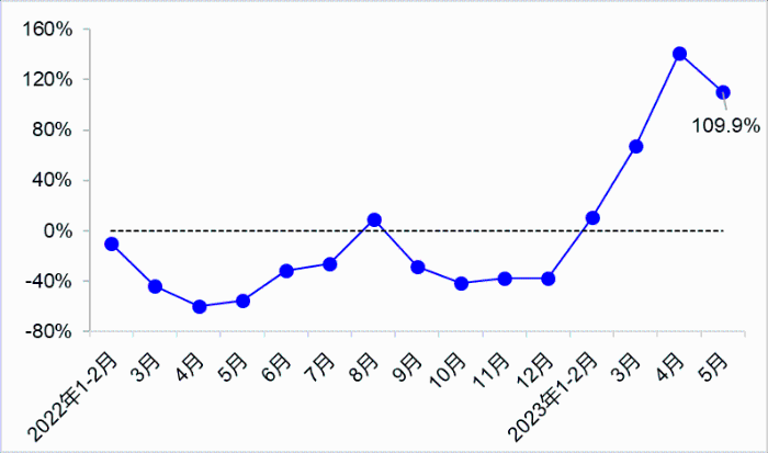 營業性客運方面,5月完成營業性客運量7.9億人,同比增長109.9%,其中,完成公路客運量3.9億人,同比增長46.7%;完成水路客運量2453萬人,同比增長269.6%。1—5月,完成營業性客運量35.2億人,同比增長57.0%,其中,完成公路客運量17.5億人,同比增長17.5%;完成水路客運量9748萬人,同比增長160.4%。