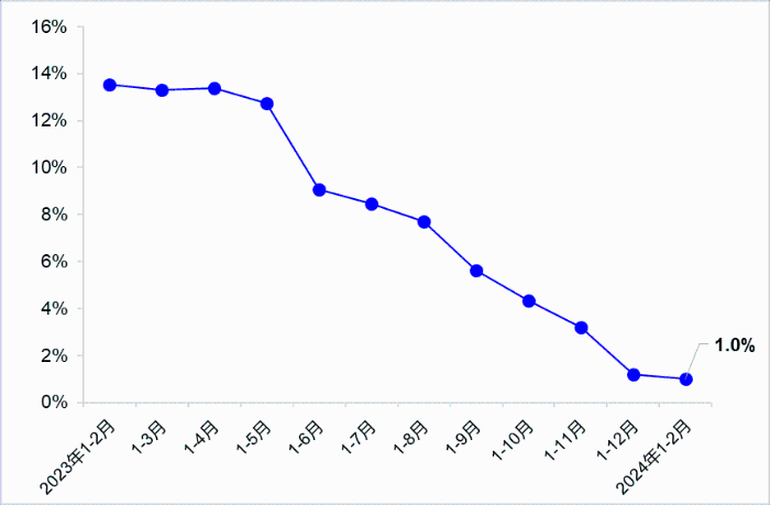 1—2月,完成交通固定資產投資3885億元,同比增長1.0%。其中,完成公路投資2736億元,同比下降6.4%;完成水運投資273億元,同比增長17.0%。