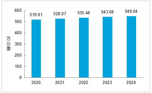 圖1 2020-2024年年末全國鐵路營業(yè)里程