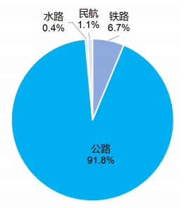 圖5 ?2024年營業(yè)性貨運量構成(按運輸方式分)