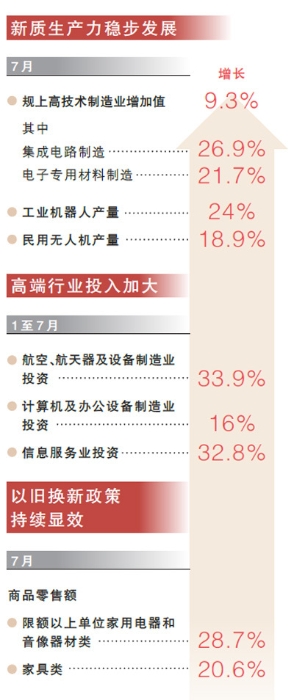 7月規(guī)上高技術(shù)制造業(yè)增加值同比增長(zhǎng)9.3%