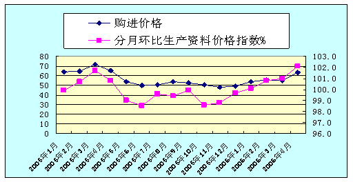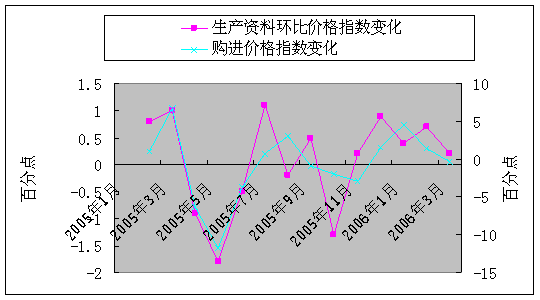圖4.9 2005年1月-2006年3月購進價格指數與生產資料價格指數