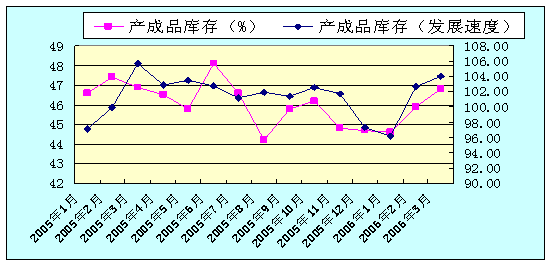 圖4.7 2005年1月-2006年3月產成品庫存指數與工業產成品庫存比較